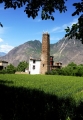 丹巴的山寨是嘉绒藏寨民居中最具特色的,尤以聂呷、革什扎、巴底乡为最为突出,几百幢民居依山就势、错落有致地融于河谷中、山腰上,其间点缀着一丛丛的绿树,远远看去,充满灵气的山谷中,翡翠般的青草绿树之中,是那沉甸甸的田地和隐在密林深处的寨房,伴着时有时无的潺潺溪流,形成一幅富动感绝妙的山寨画卷。