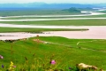 若尔盖草原除了美丽的花湖,还有位于唐克的黄河九曲,黄河九曲第一弯地处草原腹心地带,白河于此汇入黄河,形成浩大气势。河面宽而蜿蜒,曲折河水分割出无数河洲、小岛,水岛翔集、渔舟横渡,被中外科学家誉为“宇宙中庄严幻影”。黄河第一弯地势平坦,水流舒缓,九曲地带,岛屿众多,红柳成林,婆娑多姿,其间多锦鸡野兔。登高临远,但见黄白二河争流,蜿蜒而去。夕阳西下,晚霞映红了九曲第一弯。归巢的黄鸭、溪鸥破空而过,形成“落霞与弧鹜齐飞,秋水共长天一色”的美妙景致。簇簇帐篷,缕缕炊烟,骏马奔驰,民歌声声,如诗如画,美不胜收。俗话说"不到黄河心不甘"凡来若尔盖县的中外游客,都以饱览黄河九曲壮景为一大快事。